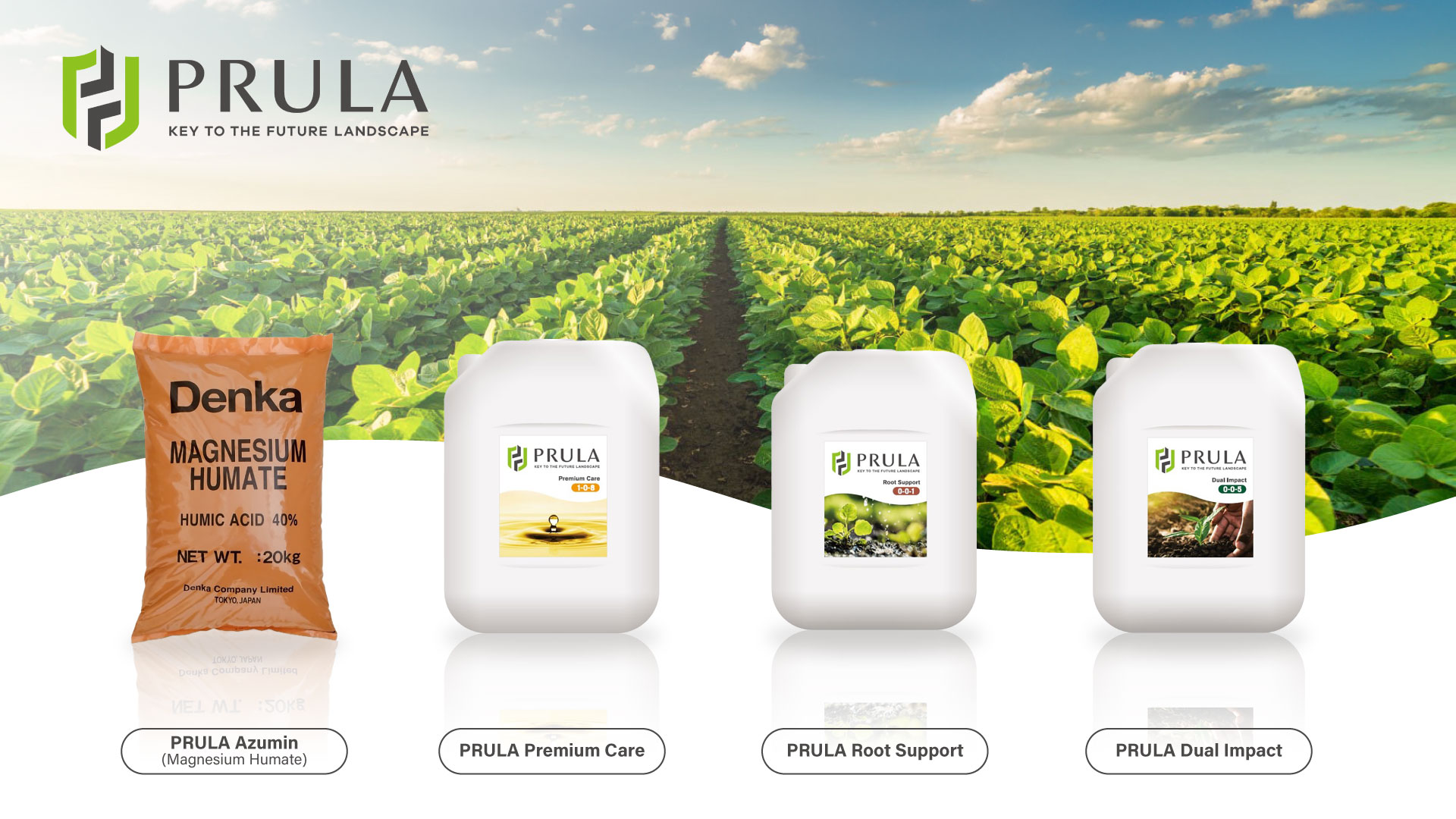 PRULA is Denka's brand of humic substances-based biostimulants, produced using technology developed for manufacturing AZUMIN, which contains 40% humic acid. Humic substances play a significant role in soil fertility and refer to the dark-colored compounds in the soil, formed through the decomposition of organic matter.